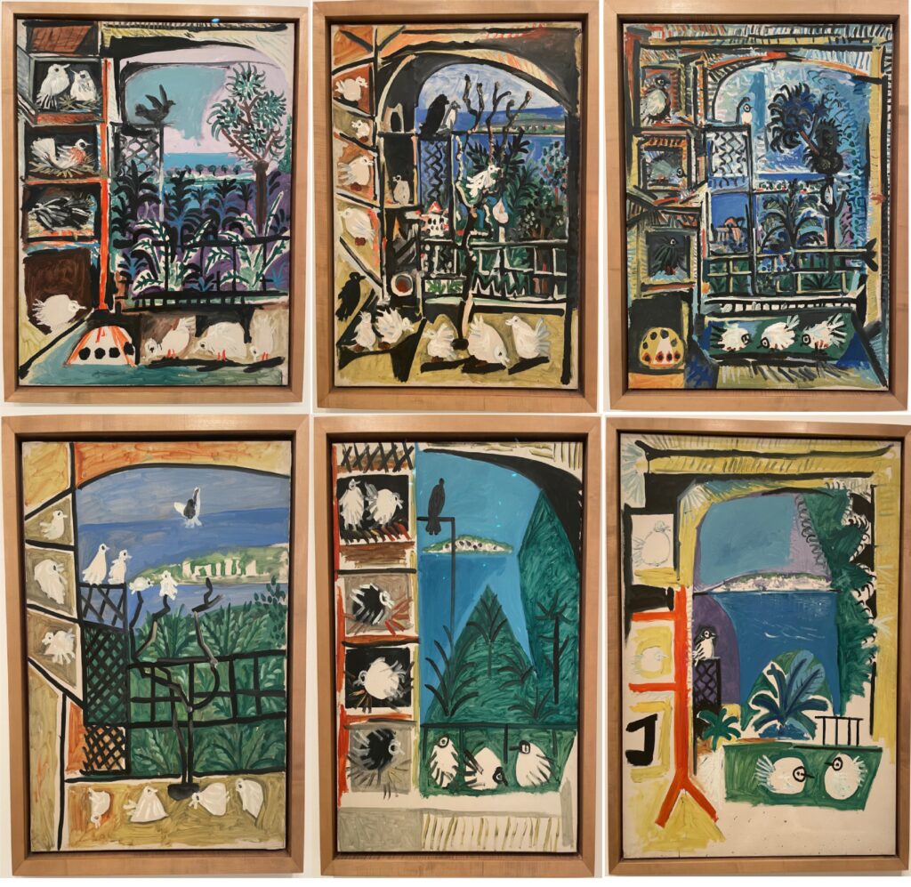 Picasso takes a week off in September to release stress from the obsessive study of the Velasquez painting, and creates 9 paintings of the pigeons that gather in the balcony outside his studio.